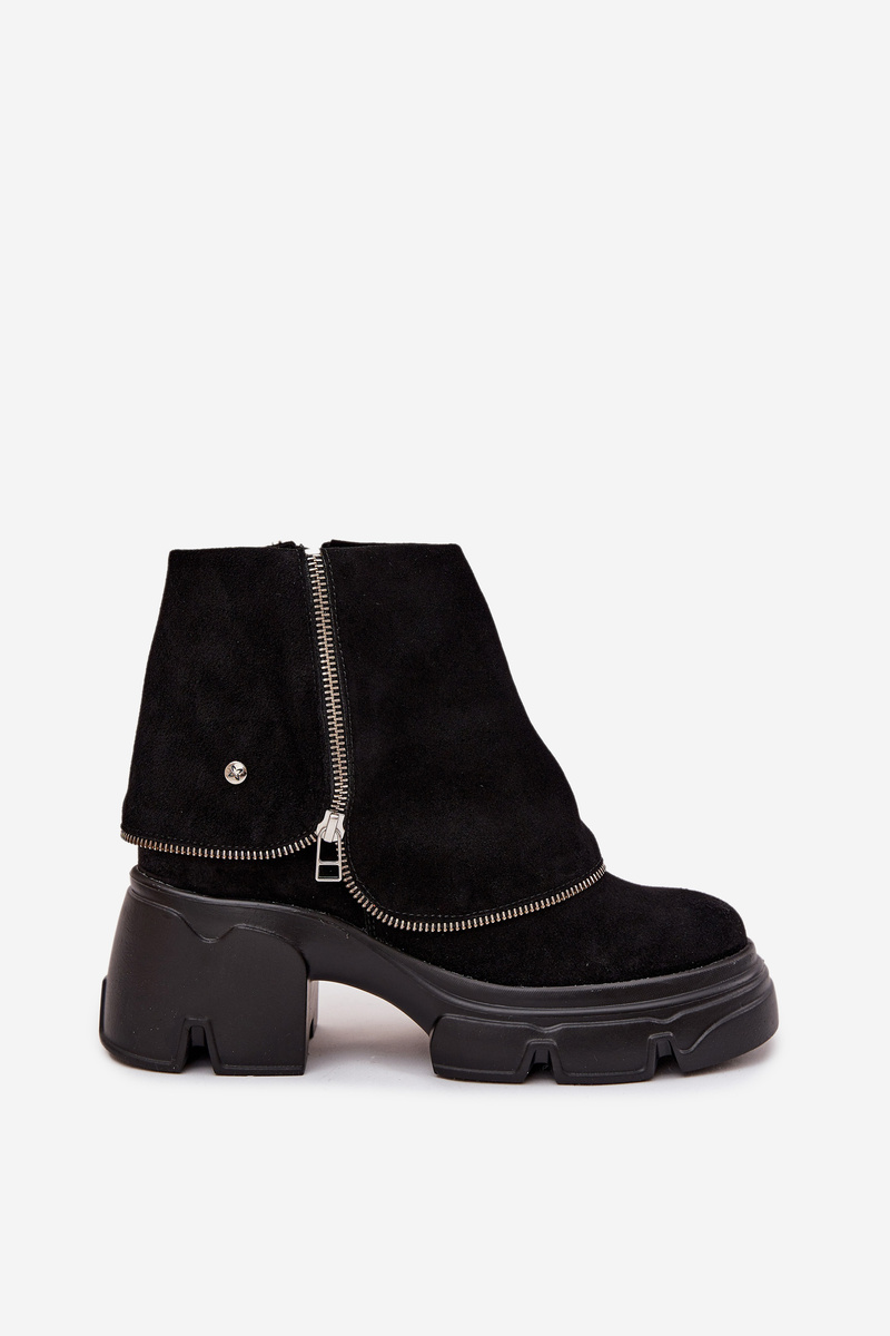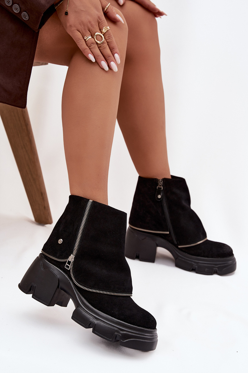 Dámské kotníkové boty značky Maciejka jsou návrhem, který spojuje originální vzhled s pohodlím při nošení. Vyrobené z vysoce kvalitní přírodní kůže, vypadají elegantně a jsou nesmírně odolné. Model je umístěn na stabilním podpatku ve tvaru kostky a platformě, což zajišťuje komfort a jistotu kroků. Charakteristickým prvkem bot je efekt ohnuté lýtka, který jim dodává jedinečný styl a odlišuje je od klasických modelů. Vnitřek je vyhřátý měkkým, příjemným na dotek materiálem, který zaručuje teplo a pohodlí v chladnější dny. Díky praktickému zapínání na zip jsou boty snadno obouvací a sundací. Jedná se o originální a stylový model, který skvěle doplní podzimní a zimní outfity a dodá jim eleganci a charakter. Při výběru velikosti se prosím řiďte tabulkou velikostí. Při výběru velikosti se řiďte tabulkou velikostí.