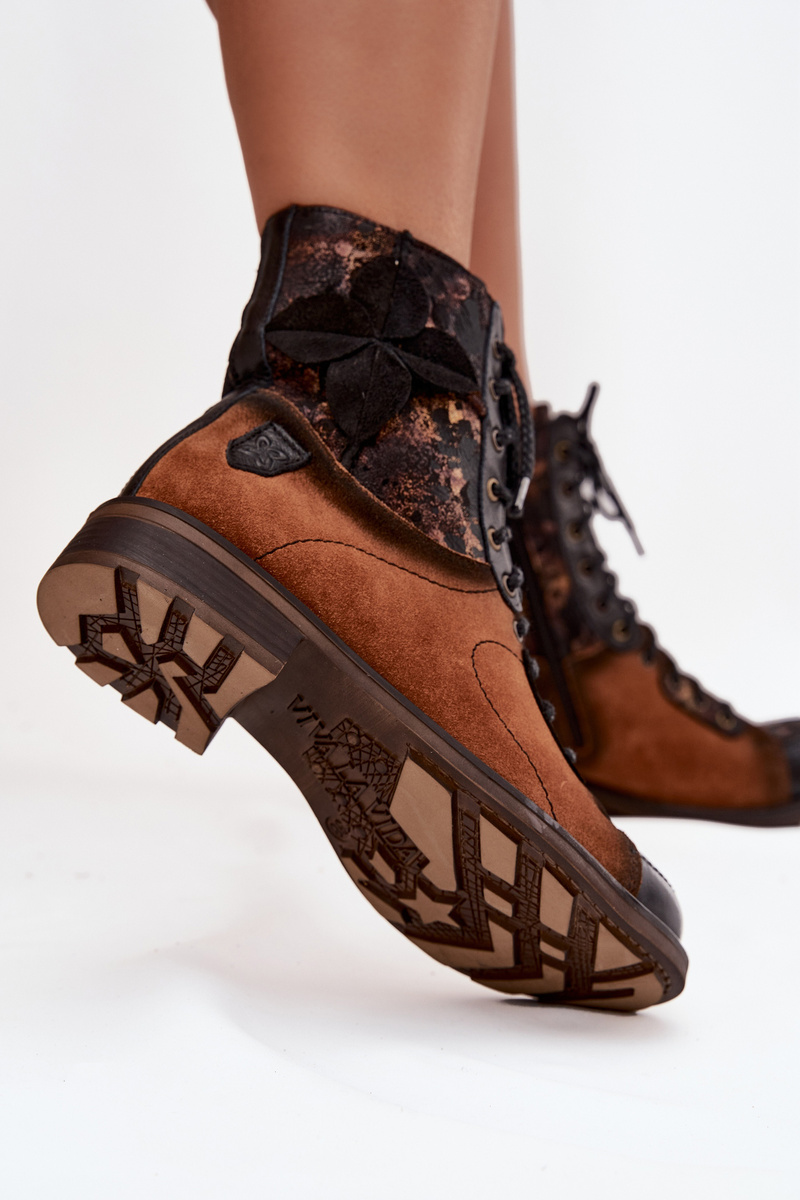 Kožené dámské kotníkové boty z pravé kůže na nízkém podpatku Maciejka 07004-29 camel