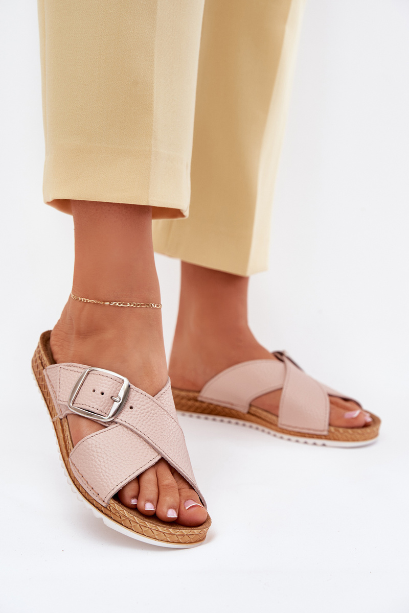 Kožené dámské pantofle s přezkou růžové Inblu VO0004GU