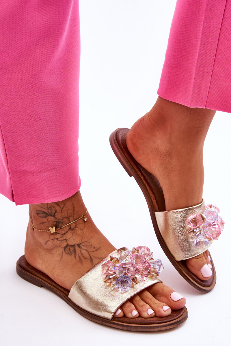 Kožené dámské pantofle se zdobením Nicole 2726/064 zlate