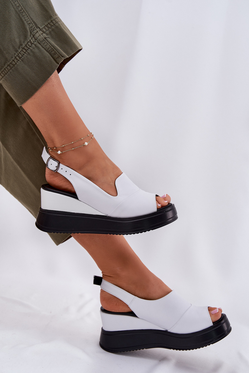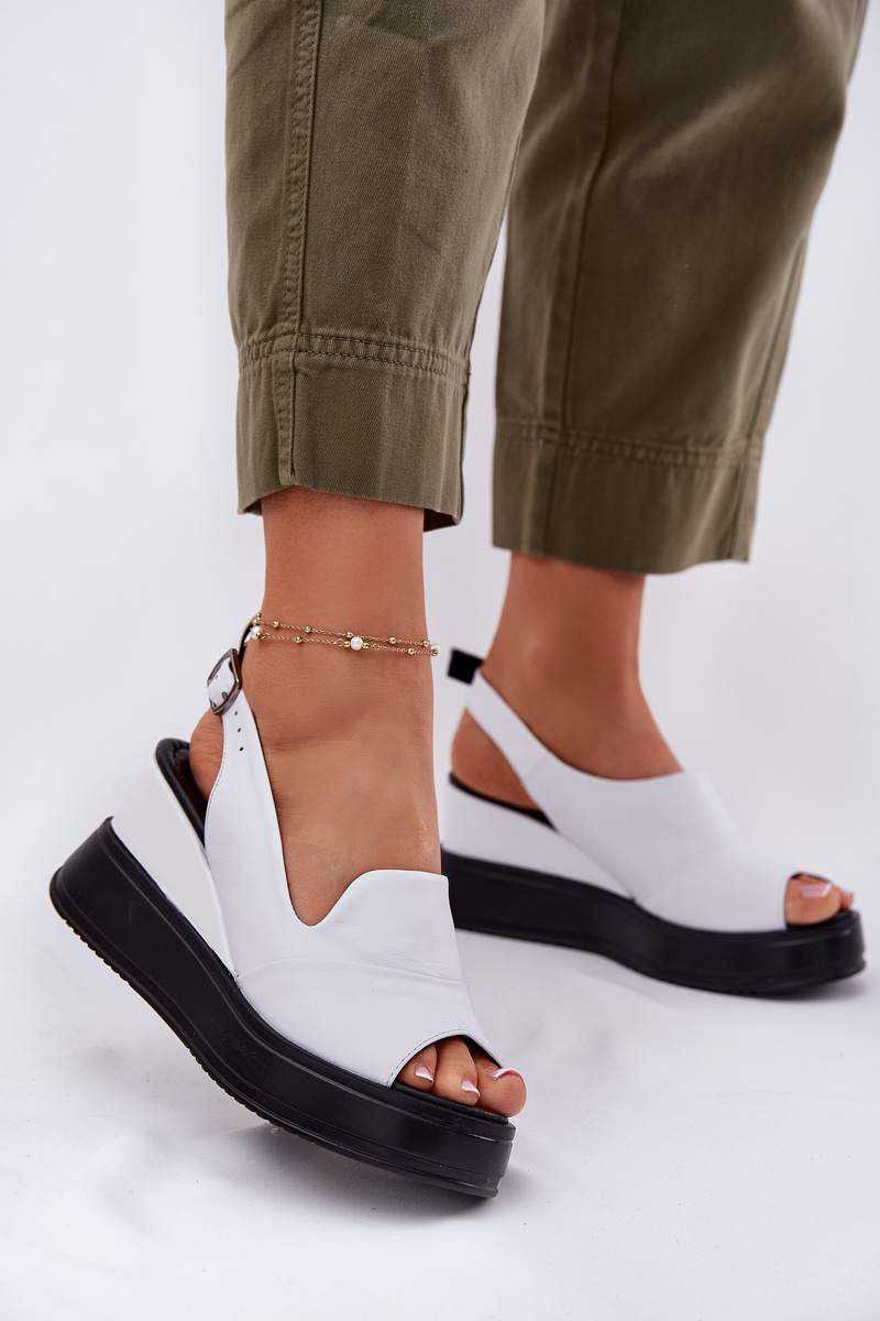 Kožené Dámské Sandály Na Klínu Artiker 52C0483 Bílé