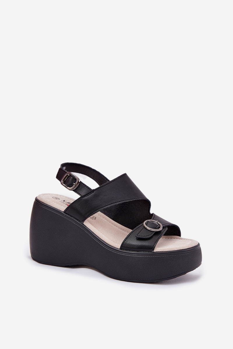 Kožené dámské sandály na platformě a podpatku S.Barski LR51-540 černé
