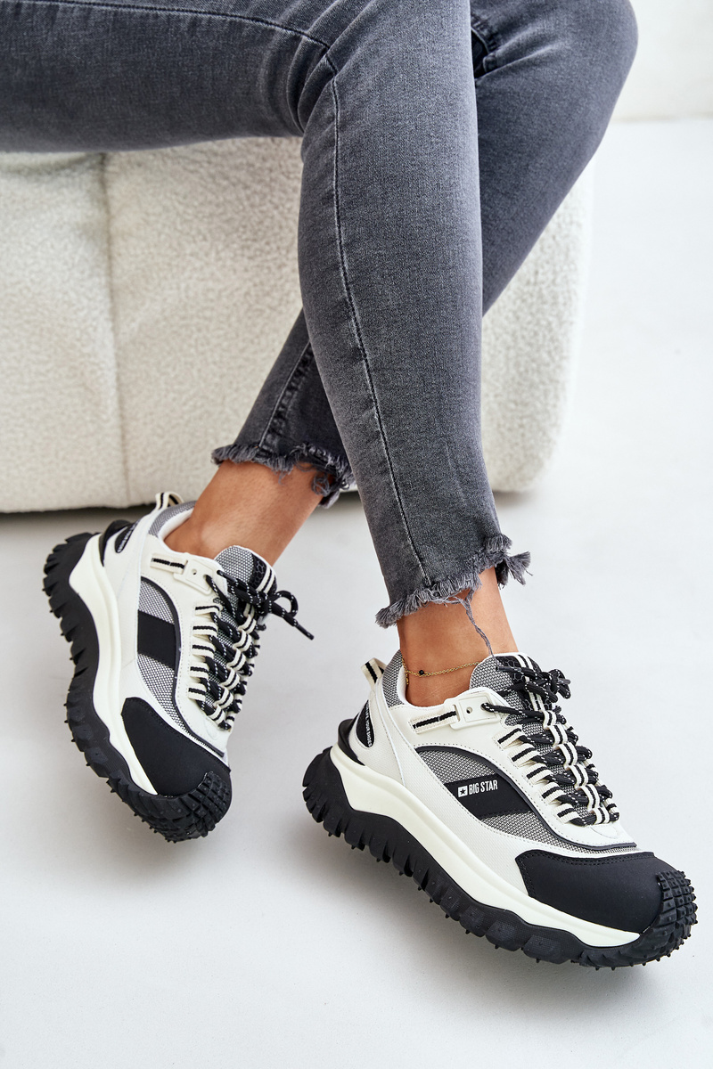 Kožené Dámské Sneakersy Na Platformě Big Star OO274A220 HI-POLY SYSTEM Bílá-Černá