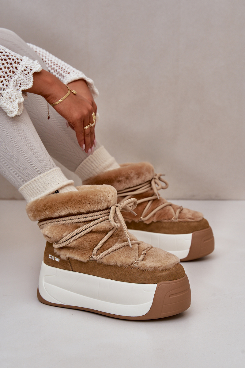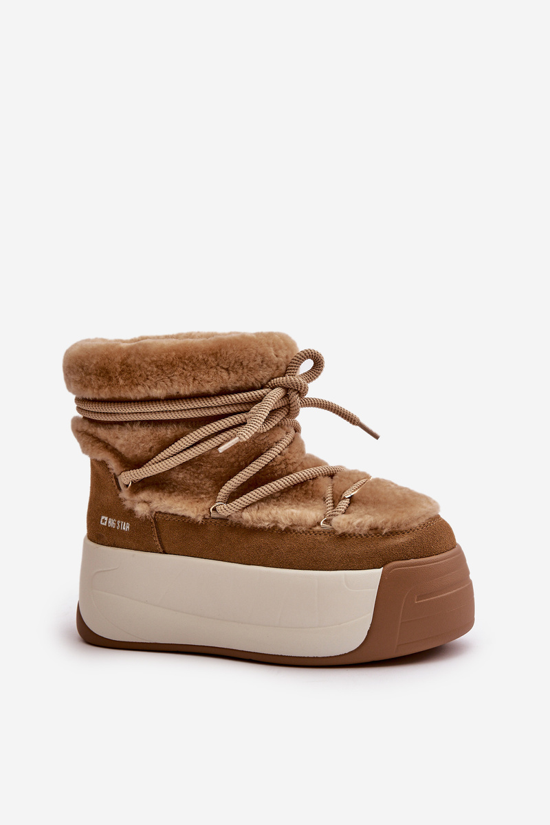 Kožené Dámské Sněhule Na Silné Podešvi S Kožešinou Big Star OO274A207 Hnědé