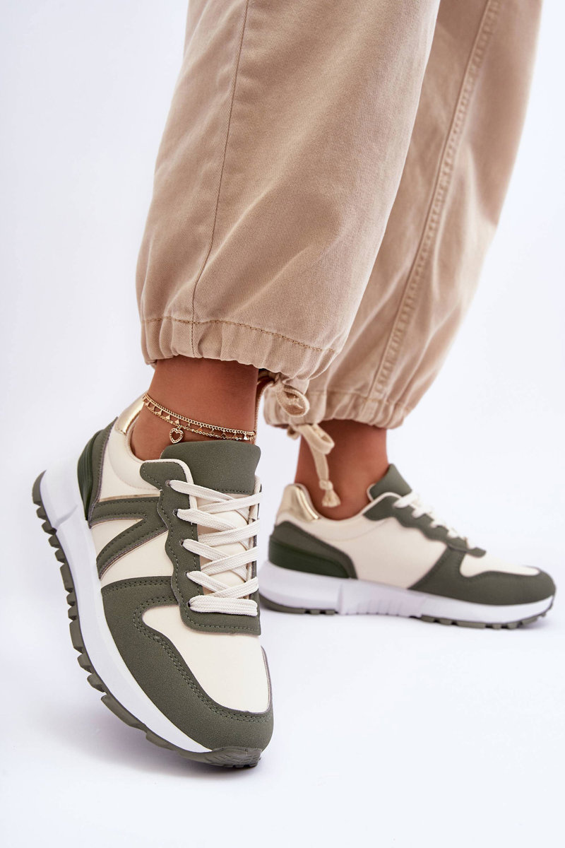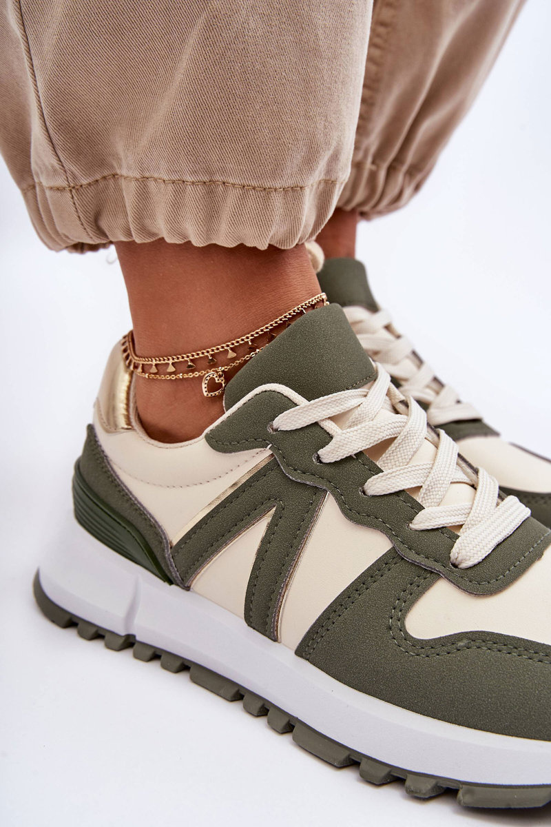 Kožené dámské sportovní boty zeleno-béžové Kabama