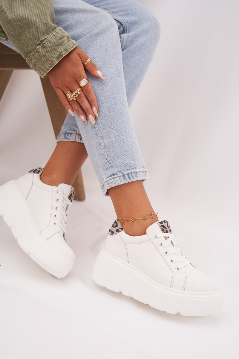 Kožené dámské tenisky na platformě Panterka Vinceza 89144 Bílé