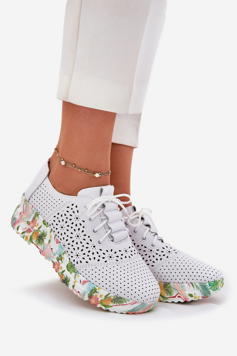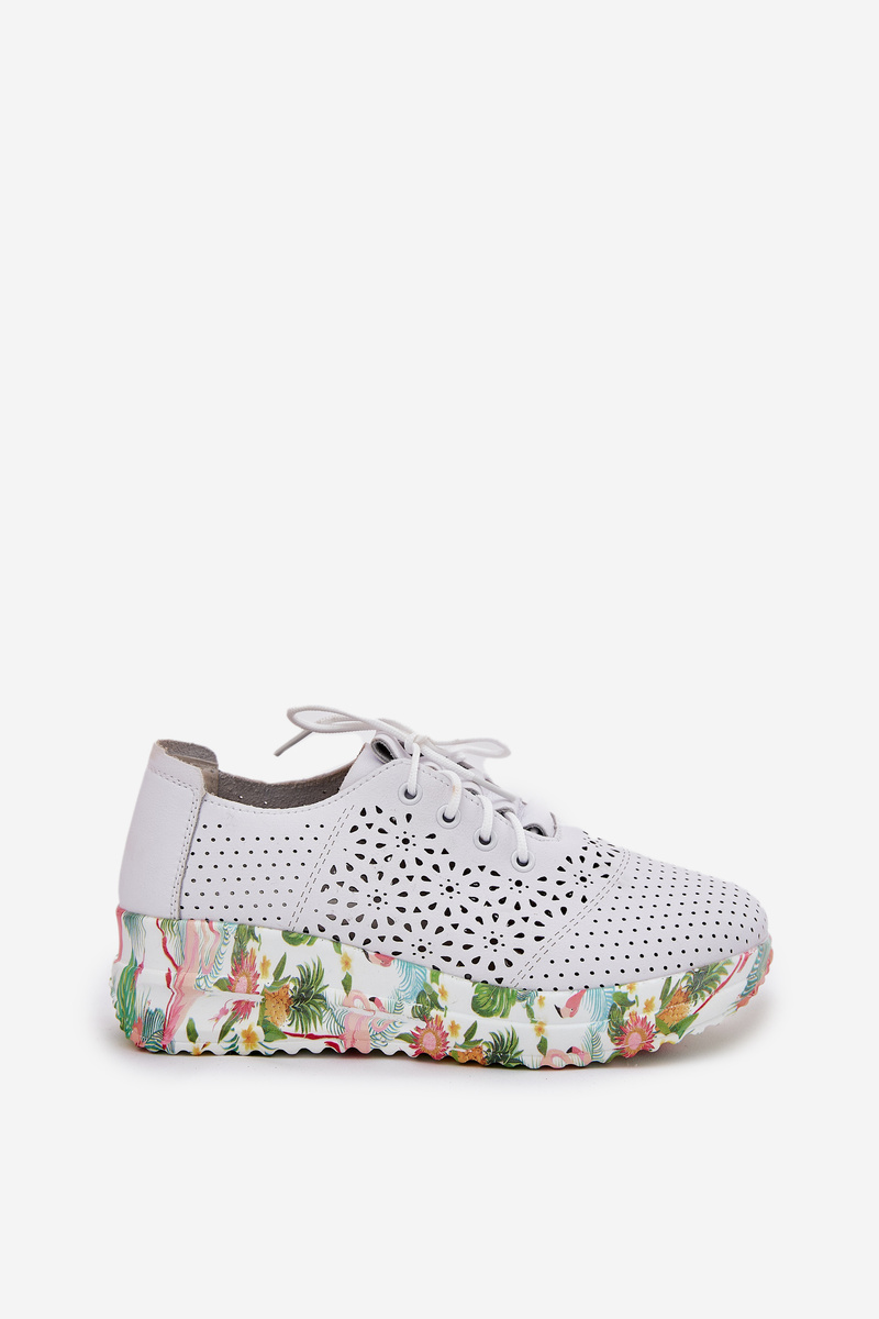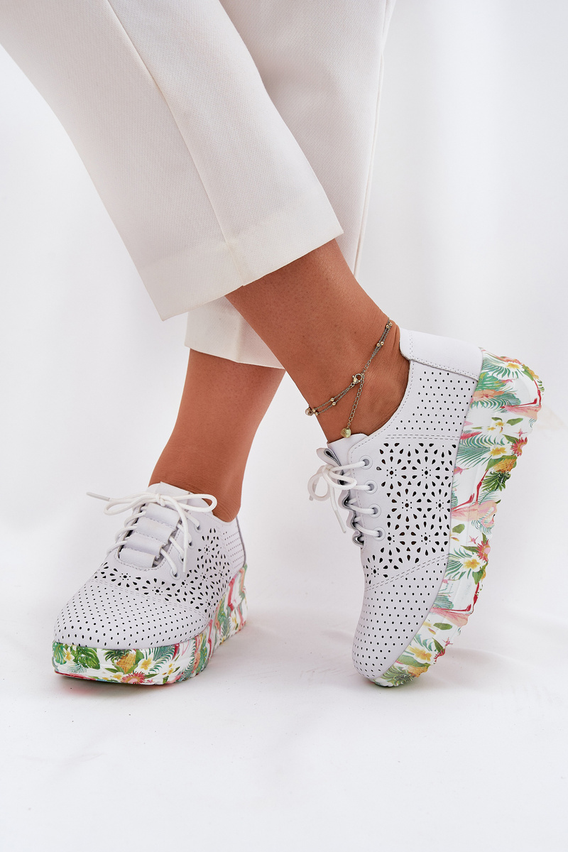 Kožené Děrované Polobotky Dámské Na Klínu Artiker 56C1532 Bílé
