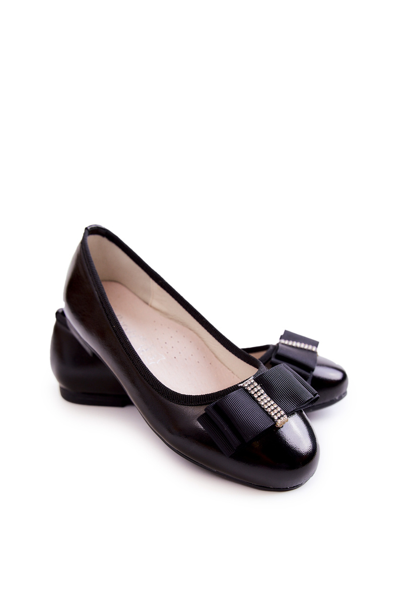 Kožené dětské baleríny s ozdobnou mašlí Černá Claril