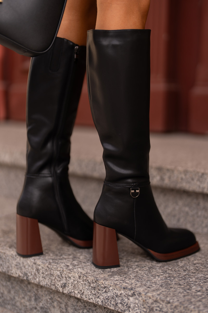 Kožené elegantní kozačky na podpatku zateplené D&A JC42-39 Černé