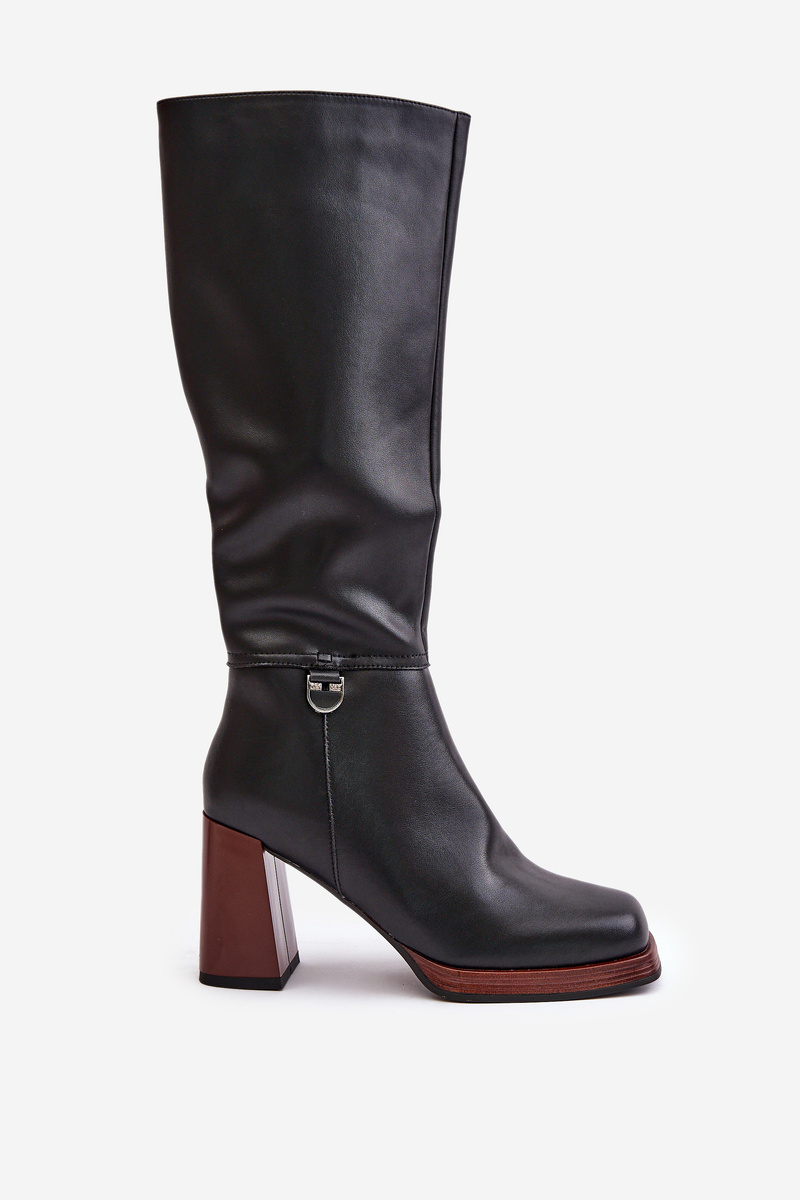 Elegantní dámské kozačky vyrobené z přírodní kůže. Na sloupkovém podpatku. Špičky zaoblené. Zapínání na zip. Uvnitř zateplené obuvnickou vatou, což zajišťuje teplo a komfort v chladnějších dnech. Svršek sahá až ke kolenům. Ideální k šatům a sukním! Při výběru velikosti se řiďte tabulkou velikostí.