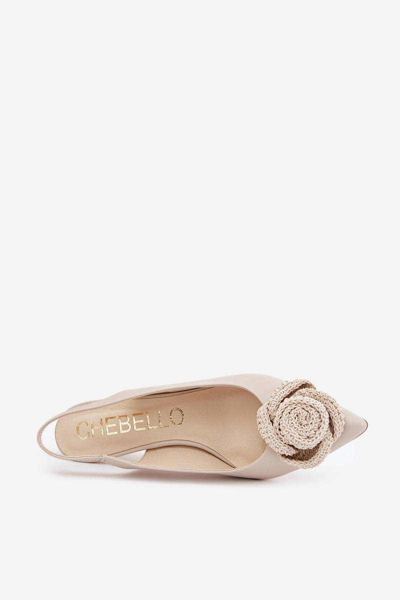 Kožené Elegantní Lodičky Na Podpatku Béžové CheBello 4666