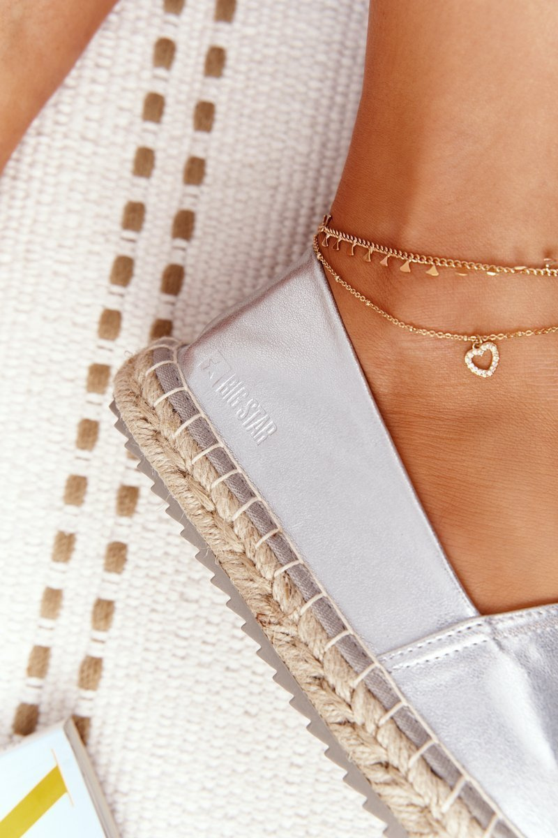 Kožené Espadrilky Na Pletené Podrážce Big Star HH274504 Stříbrné