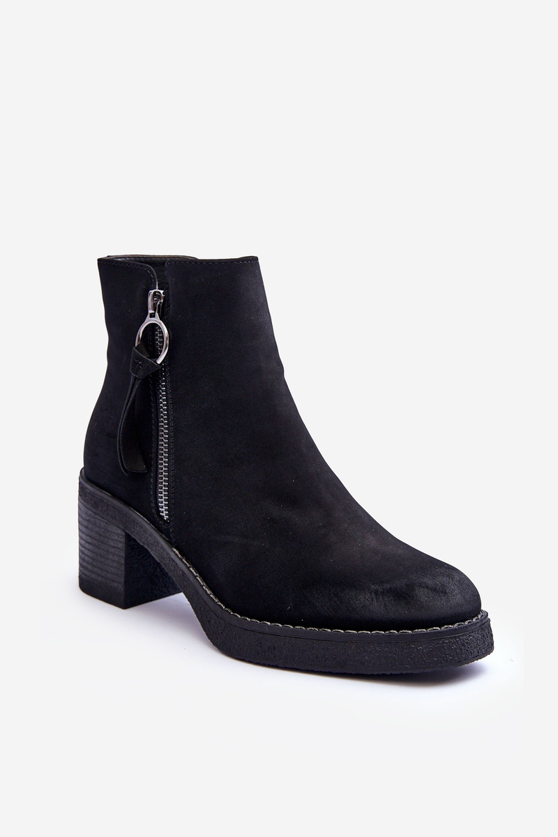 Dámské boty jsou vyrobeny z eko zamszu. Osazené na platformě a podpatku. Tento model má zaoblený špičku a je zapínán na zip po straně. Boty jsou vystlány obuvnickou výplní. Další zip na vnější straně boty se nerozepíná. Boty na podpatku jsou skvělou volbou pro podzimní styl. Nečekejte až zmizí a kupte si je hned dnes! Při výběru velikosti se řiďte tabulkou velikostí.