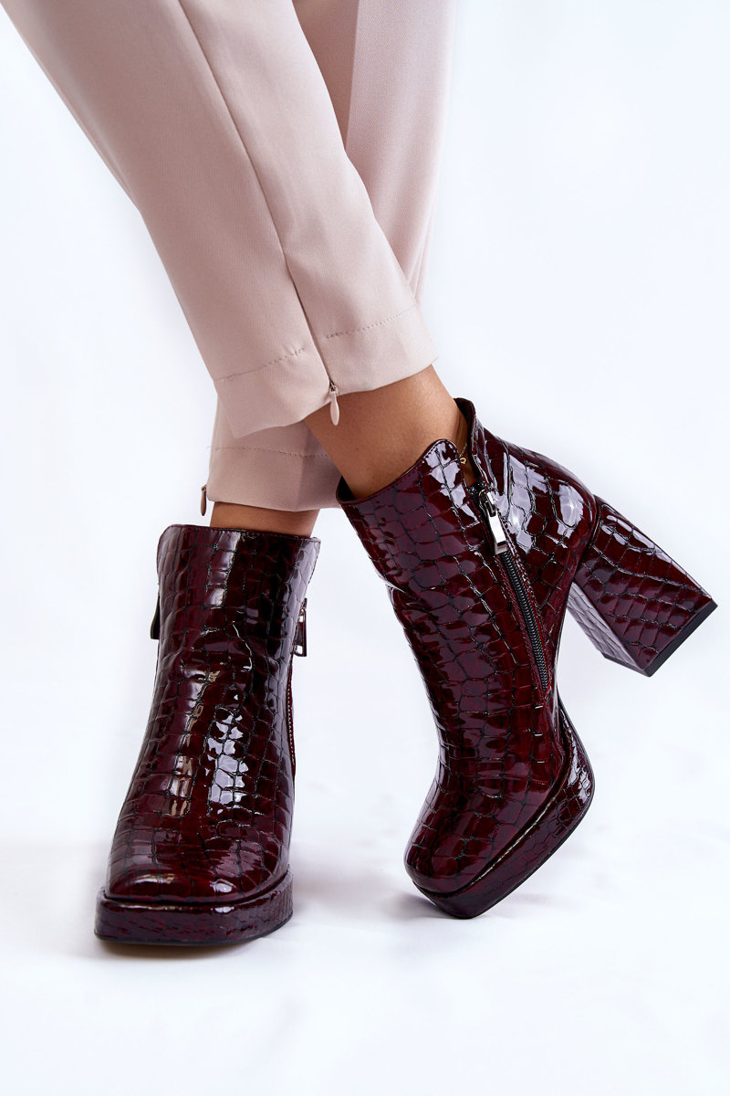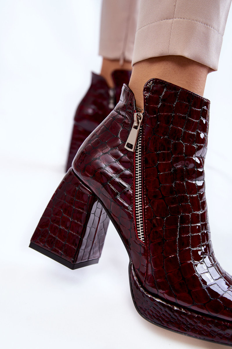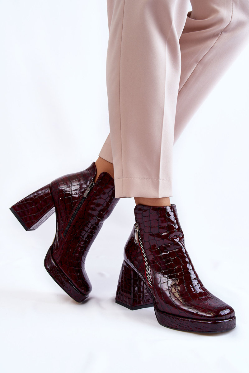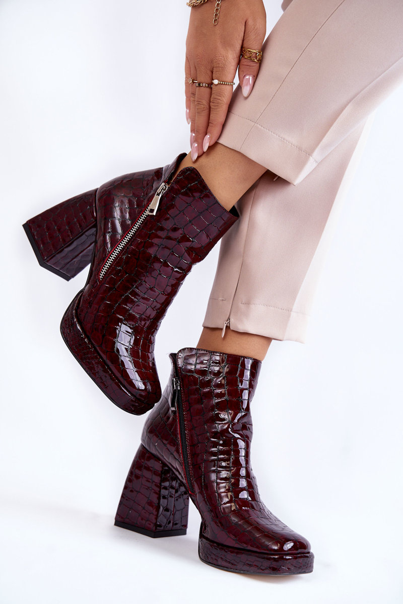 Kožené kotníkové boty krokodýlí vzor Burgundsko Alienore