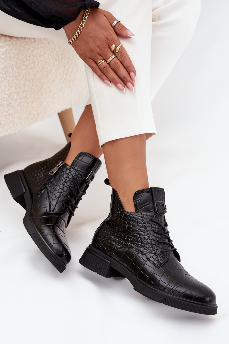 Kožené kotníkové boty s dekorativním ražením Oteplené Vinceza 66815 Černé