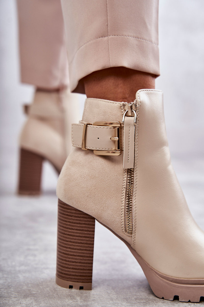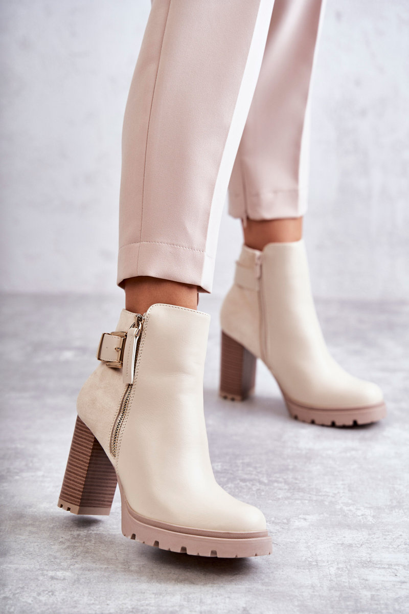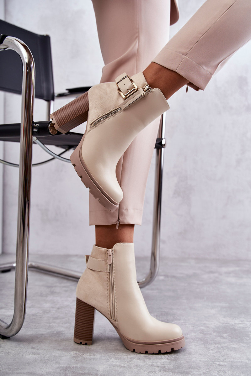 Kožené Kozačky Na Vysokých Podpatcích S Ozdobným Zipem Béžove Rosita