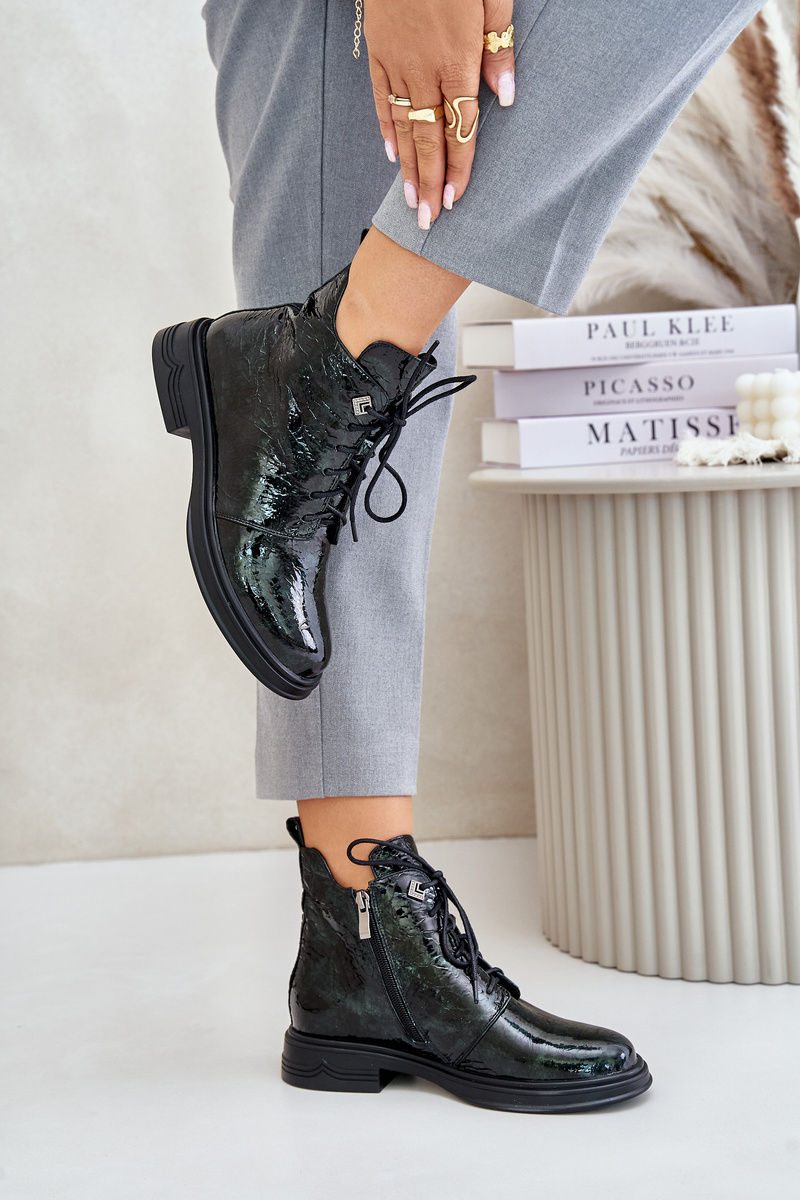 Kožené Lakované Boty Dámské Zateplené Na Zip D&A LZ42-042 Tmavozelené
