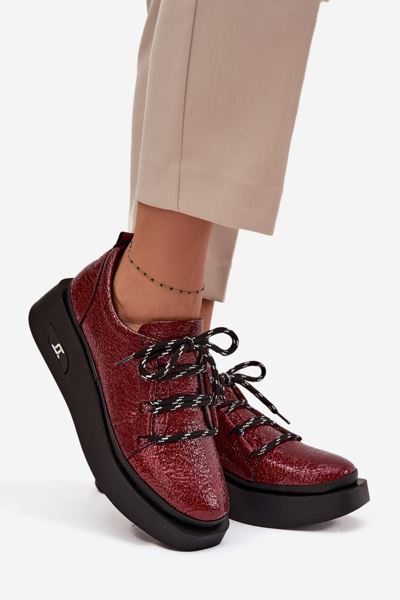 Kožené Lakované Dámské Mokasíny Na Platformě Artiker 57C2046 Bordó
