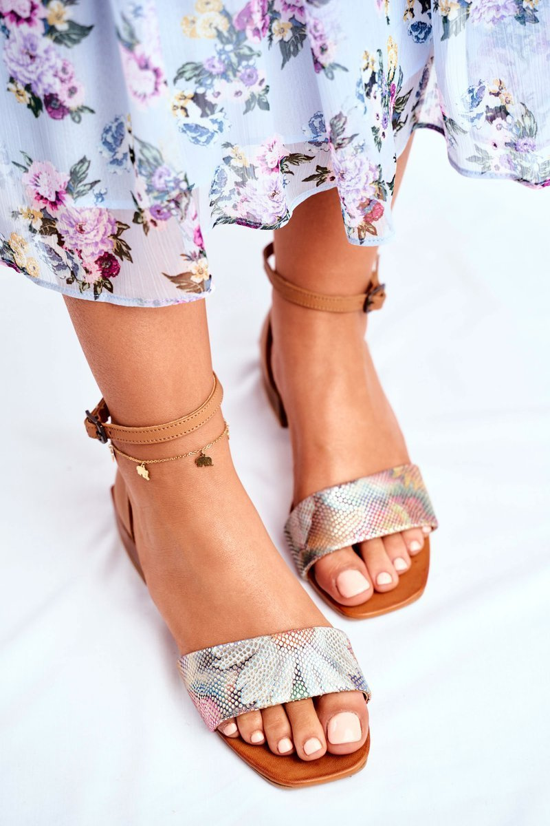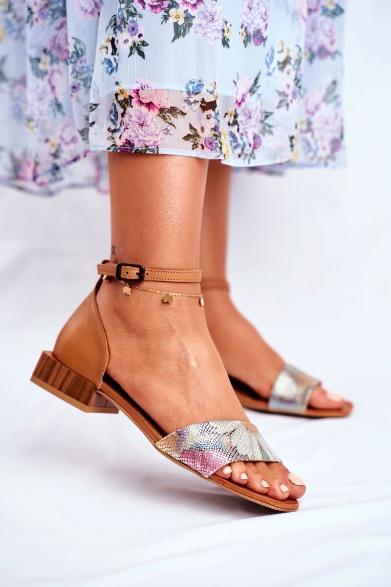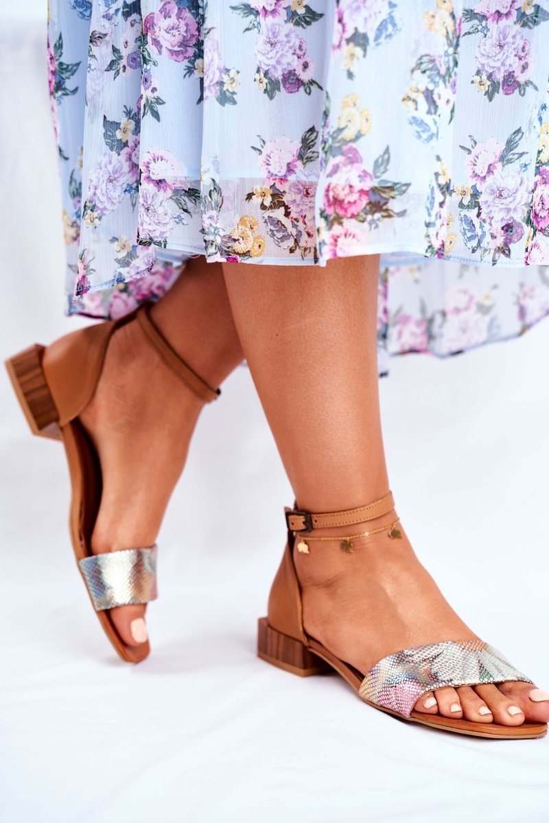 Kožené Lesklé Sandály Maciejka 04618-29 Camel