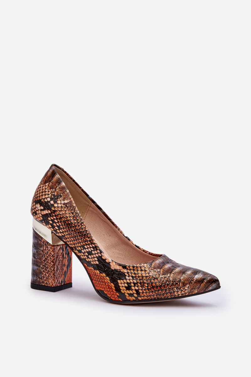 Kožené lodičky Lewski Hadí 3117 Oranžovo-hnědá