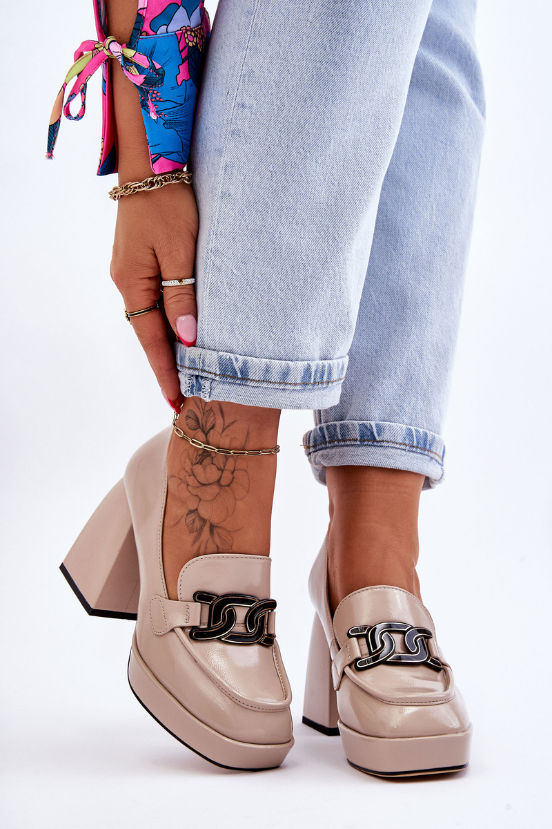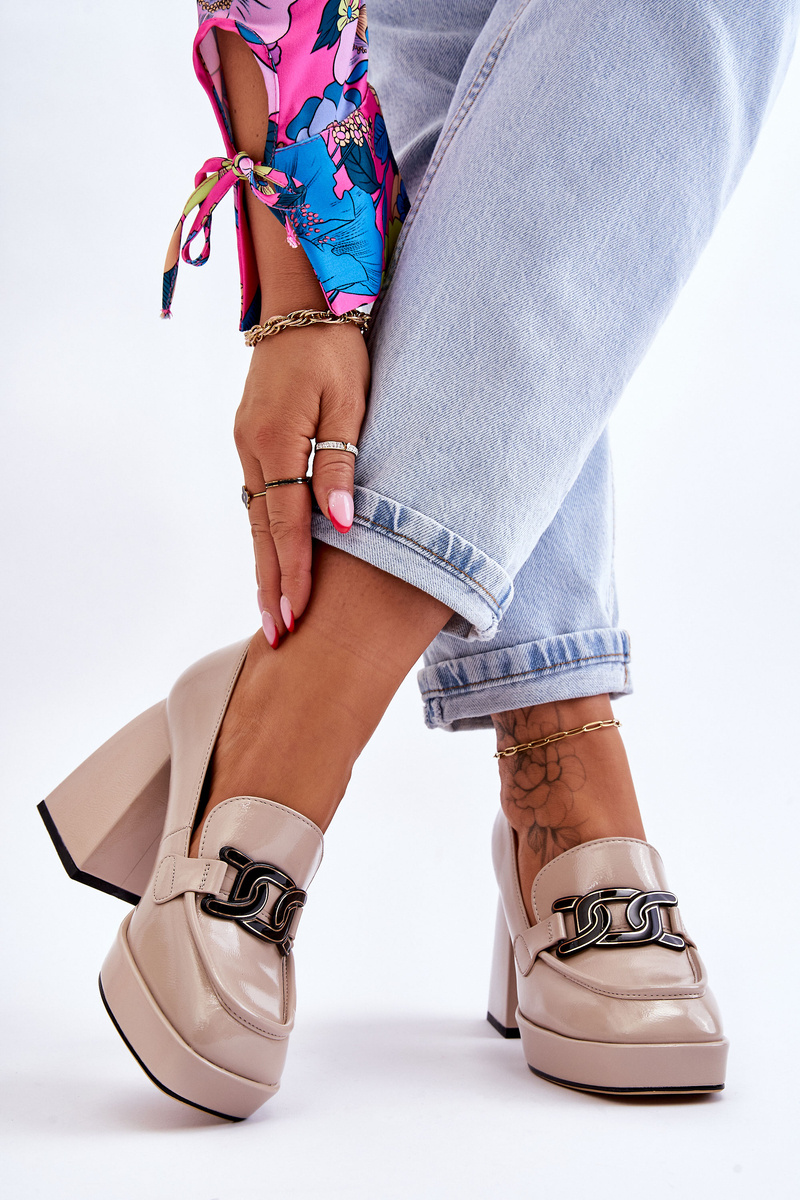 Kožené Lodičky Na Masivních Podpatcích Béžove Maximo