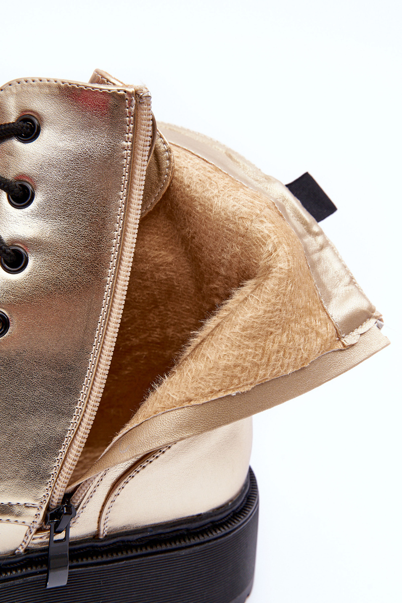 Kožené Metalické Botky Workery Zlaté Teflorna