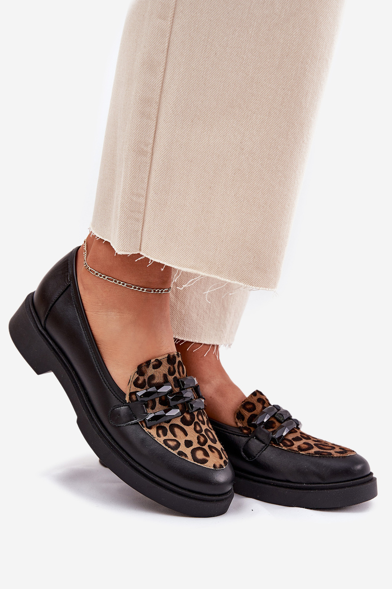 Kožené Mokasíny S Ozdobou A Panterou Černé Laura Messi 2965