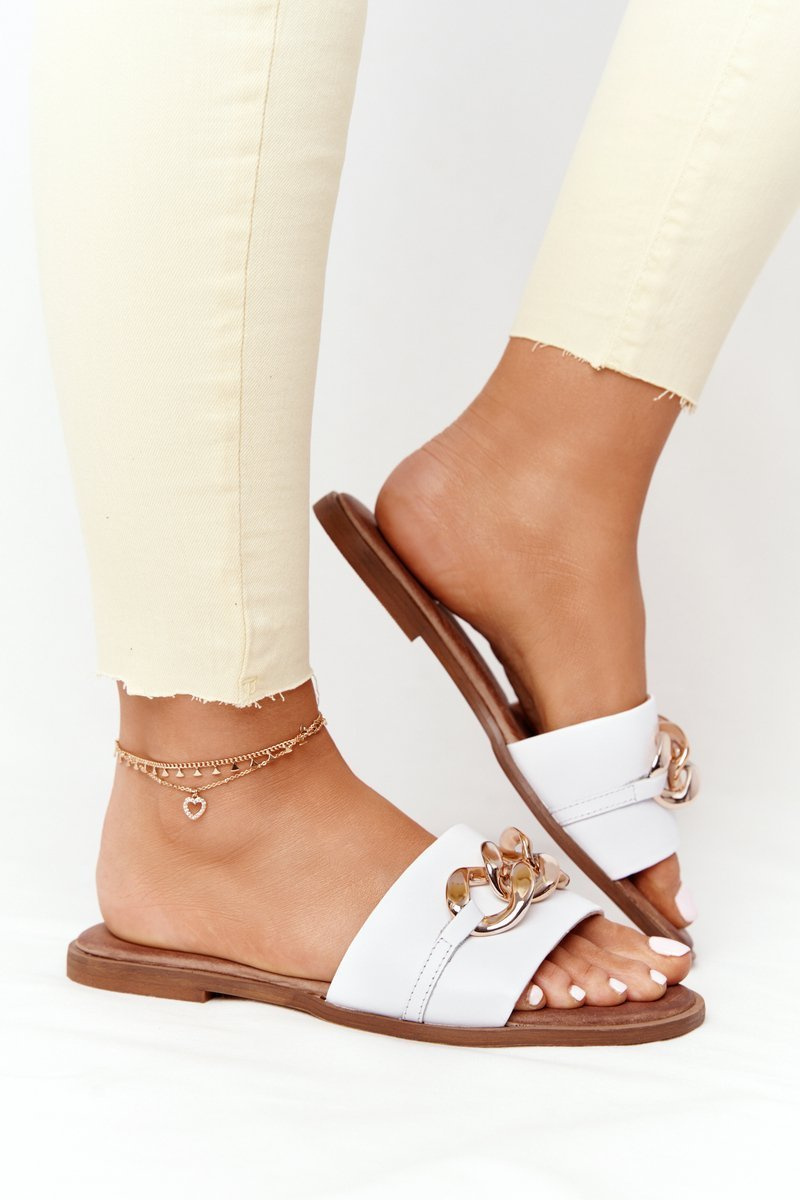 Kožené Nazouváky S Retízkem Nicole 2652 Bílé