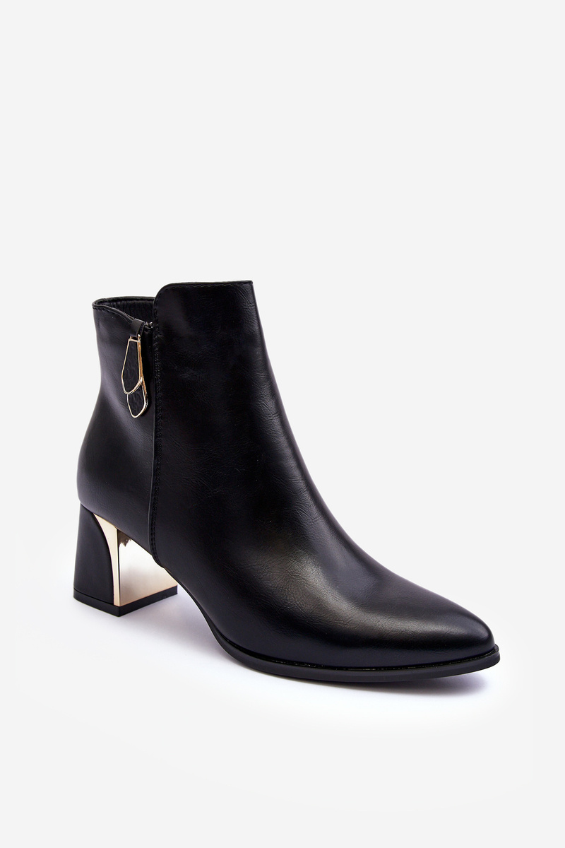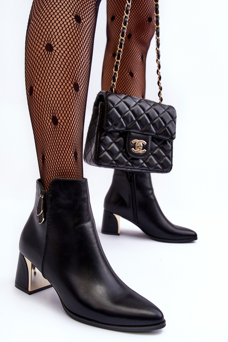 Boty dámské instalované na podpatku ve tvaru sloupku. Horní část uzavřená na zip. Vyrobeno z ekologické kůže. Vnitřek zateplený obuvnickou dekou. Špička ve špici, vyztužený špička. Ideální pro mnoho podzimních a zimních stylů! Nezapomeňte si také prohlédnout další modely bot dostupné v naší nabídce. Při výběru velikosti se řiďte tabulkou velikostí.