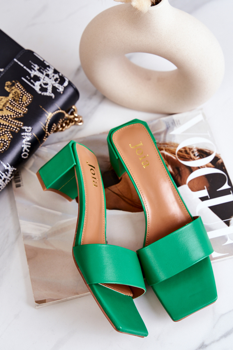 Kožené Pantofle Na Vysokém Podpatku Zelená Netty