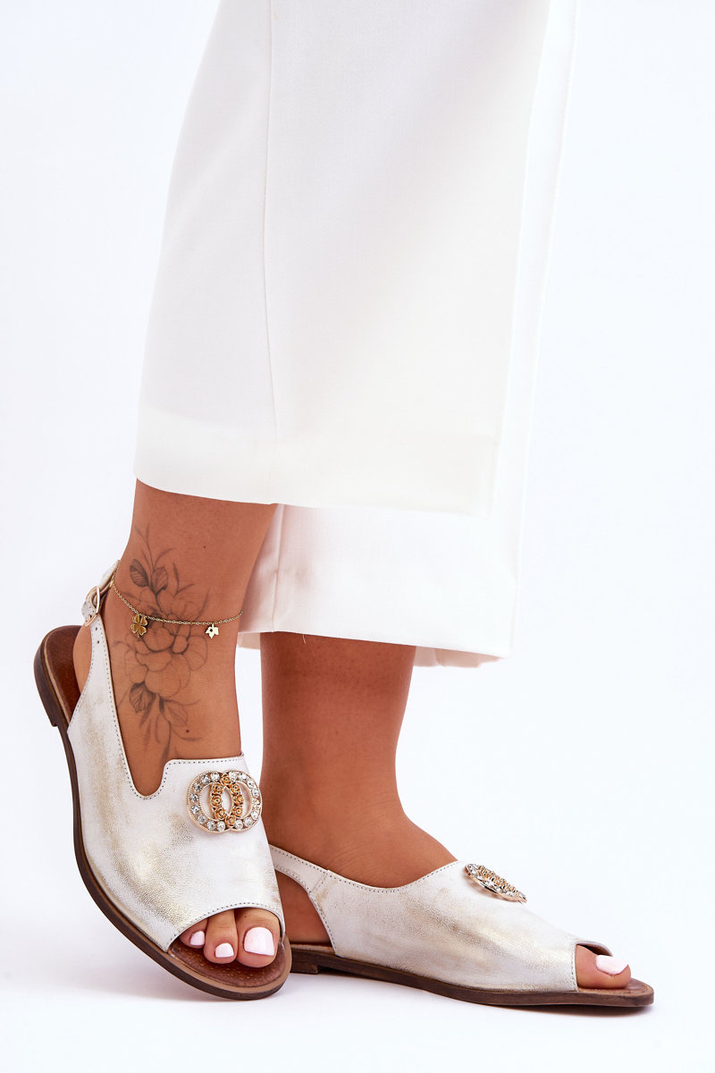 Kožené ploché sandály s ozdobou Nicole 2744/004 bílo-zlatá