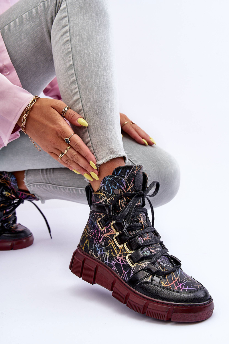 Boty dámské značky Maciejka jsou vyrobeny z nejkvalitnější přírodní kůže. Tento model je osazen na plochém podpatku a platformě. Boty jsou uzavírány zipem na vnitřní straně špičky a navíc se šněrují. Měkká vložka zajistí pohodlné nošení bot. Špička je zesílena. Při výběru velikosti se řiďte tabulkou velikostí.