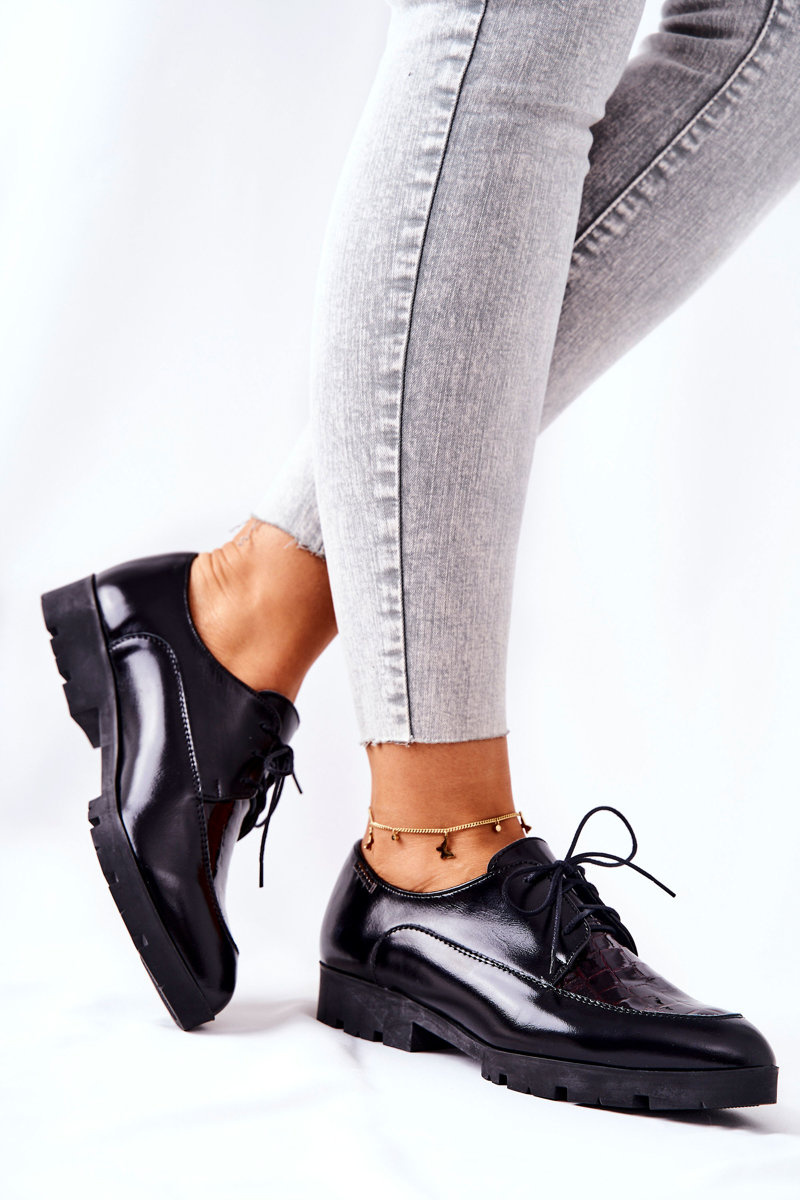 Boty byly vyrobeny z kvalitní přírodní kůže, částečně lakované. Měkká stélka z přírodní kůže zaručuje pohodlí. Vázání umožňuje přizpůsobit je velikosti nohy. Nízký, pevný podpatek poskytuje pohodlí. Díky špičaté špičce bude vaše noha vypadat štíhlejší. Při výběru velikosti se řiďte tabulkou velikostí.