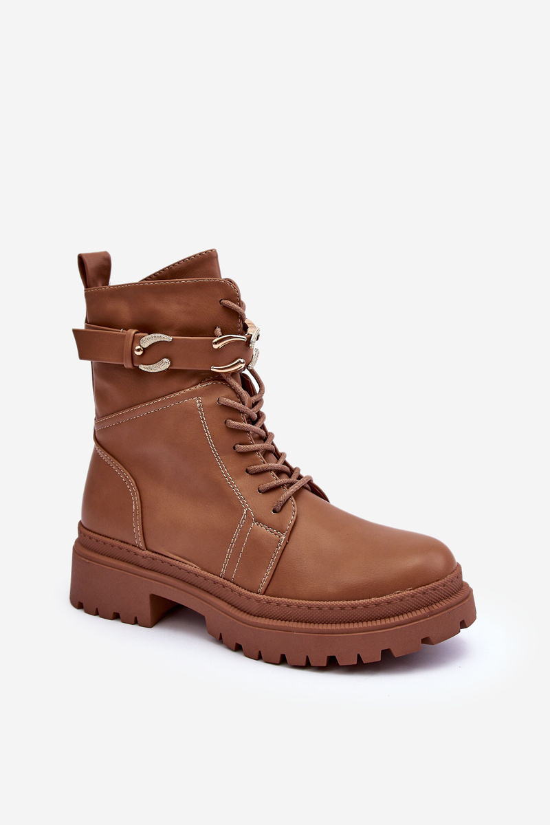 Kožené pracovní boty s ozdobným pásem hnědé Enili