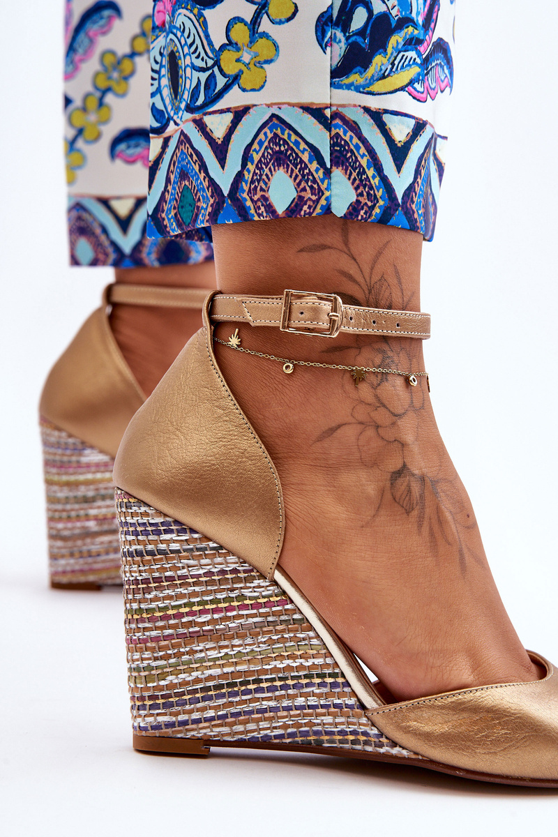 Kožené Sandály Na Koturnu Laura Messi 2603/784 Zlate