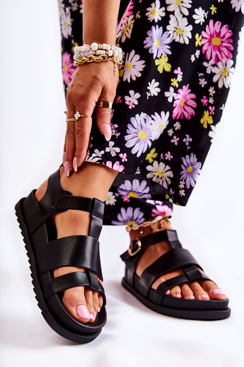 Módní a vzdušné sandály vyrobené z eko kůže. Zapínání pomocí nastavitelného pásku s přezkou. Sandály mají otevřenou, zaoblenou špičku a odhalenou patu. Pohodlí při používání zajistí měkká plastová vložka. Navíc je vložka profilovaná. Díky platformě jsou boty extrémně stabilní. Tyto sandály jsou perfektním střihem pro horké dny. Budou vypadat skvěle jak ke kalhotám, tak k šatům. Při výběru velikosti použijte tabulku velikostí.