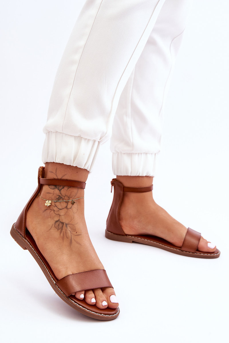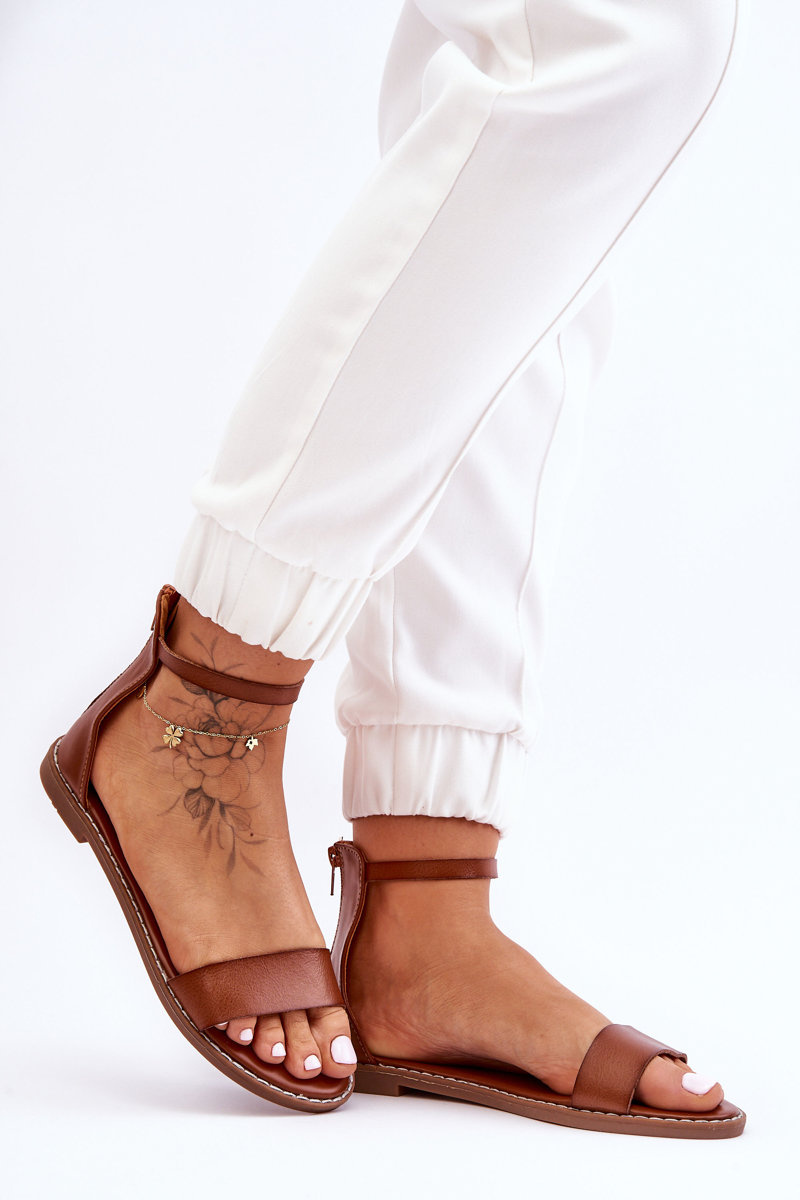 Dámské sandály jsou vyrobeny z eko kůže. Nasazené na plochém podpatku a protiskluzové podrážce. Sandály mají vepředu pásek. Měkká stélka je rovněž vyrobena z eko kůže. Tyto boty mají zapínání na zip na zadní straně svršku. Nos je otevřený, zaoblený. Kolem podrážky je prošívání. Při výběru velikosti se řiďte tabulkou velikostí.