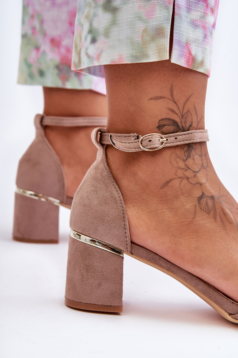 Klasické sandály byly obohaceny na přední straně o krásnou čelenku. Jsou umístěny na nízkém podpatku ve formě stabilního sloupku. Sandály jsou vyrobeny z příjemného na dotek eko semiše. Navíc mají vyztuženou špičku. Vložka je vyrobena z eko kůže a poskytne pohodlí při používání obuvi. Nos je otevřený, zaoblený. Tento model je uzavřen kolem kotníku regulovatelným páskem se sponou. Při výběru velikosti se řiďte tabulkou velikostí.