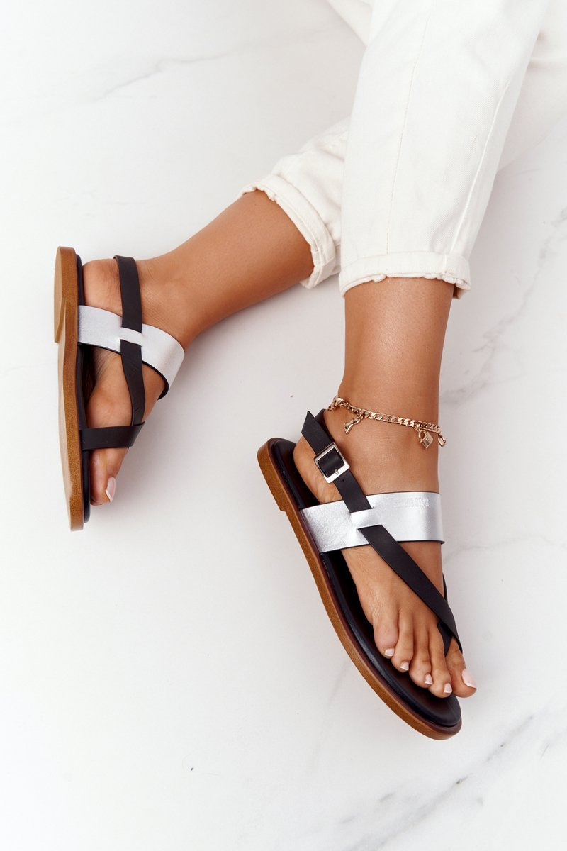 Kožené Sandály Žabky Big Star HH274712 Černé-Stříbrné