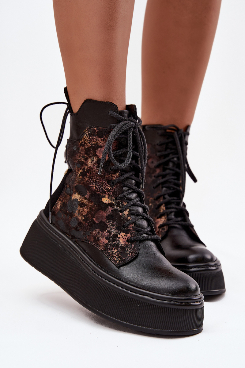 Dámské boty značky Maciejka jsou stylovým návrhem pro ženy, které si cení originálního vzhledu a pohodlí. Vyrobené z vysoce kvalitní přírodní kůže, vypadají elegantně a jsou odolné, což znamená, že vydrží mnoho sezón. Model je založen na pevné platformě, která zajišťuje stabilitu a komfort nošení. Boty mají jak praktické šněrování, tak zip, což je činí pohodlnými na obouvání a dokonale padnou na nohu. Dalším plusem je ozdobné šněrování vzadu na horní části, které dodává celkovému vzhledu originalitu a charakter. Jsou to boty, které se skvěle hodí do každodenních stylizací a dodají jim výrazný, módní akcent. Při výběru velikosti se prosím řiďte tabulkou velikostí. Při výběru velikosti se řiďte tabulkou velikostí.