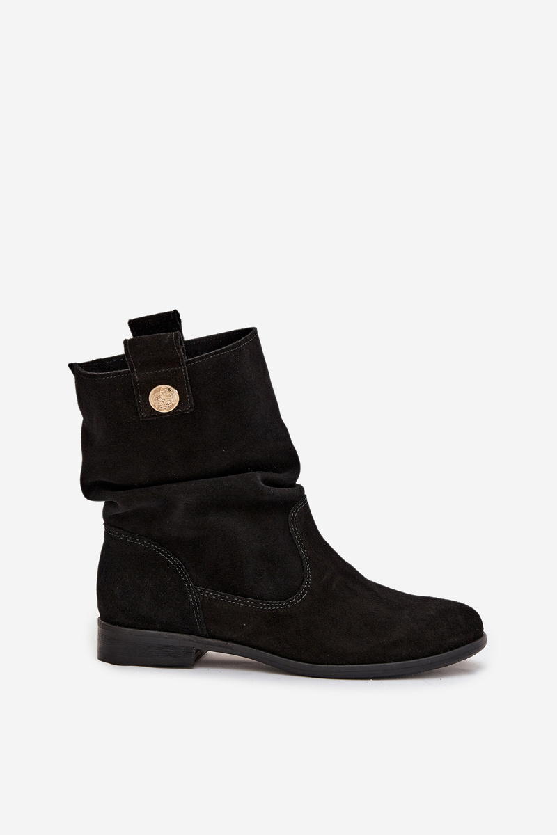 Kožené semišové dámské boty s žebrováním zateplené Zazoo 4210 Černé
