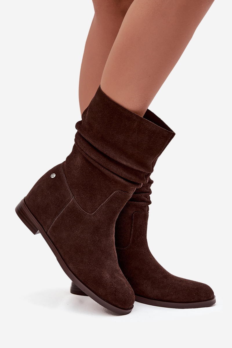 Kožené semišové dámské kotníky s řasením vyhřívané Maciejka K7211-02 Čokoládové