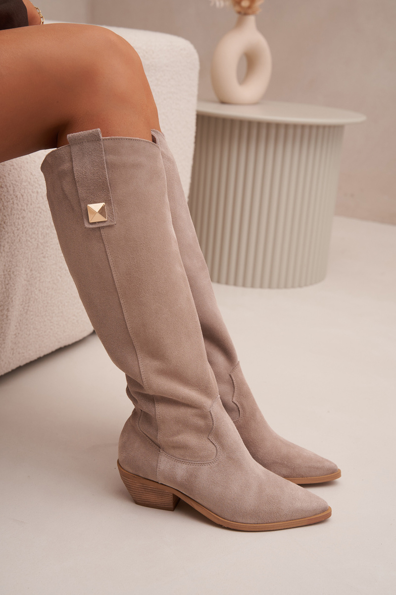Dámské kožené kozačky vyrobené z vysoce kvalitního přírodního semiše představují spojení klasiky, pohodlí a stylu. Měkký, příjemný na dotek materiál se dokonale přizpůsobí noze, zajišťující komfort při nošení a elegantní vzhled. Model na zip je praktický a pohodlný na používání, což usnadňuje nazouvání a sundávání. Kozačky jsou vyteplené filcem, což zaručuje teplo a pohodlí v chladnějších dnech, a seříznutý podpatek jim dodává originální, výrazný vzhled inspirovaný westernovým stylem. Špičaté nosy opticky prodlužují nohy, čímž dodávají postavě lehkost a ženskou půvabu. Stylový tvar těchto kozaček se hodí k mnoha stylům – budou ideálním doplňkem jak k lehkým šatům a sukním, tak i k přiléhavým kalhotám typu skinny. Při výběru velikosti se prosím řiďte tabulkou velikostí. Při výběru velikosti se řiďte tabulkou velikostí.