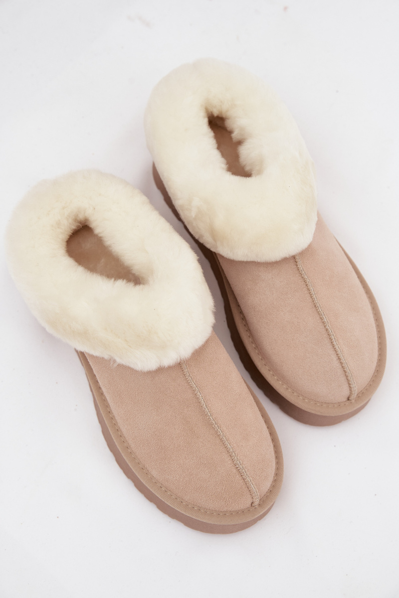 Kožené semišové sněhule dámské s kožešinou Béžové Mivelle
