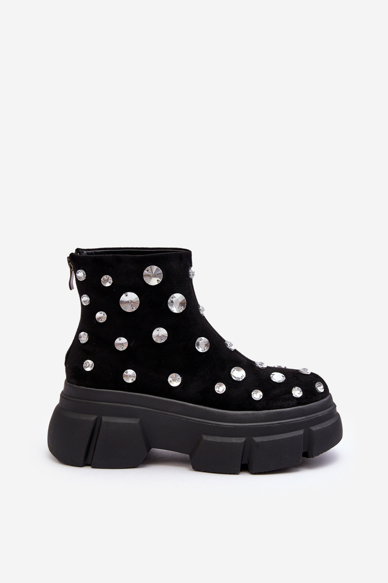 Kožené semišové zateplené kotníčková obuv s krystaly D A MR52-205 Černé Botki Damskie