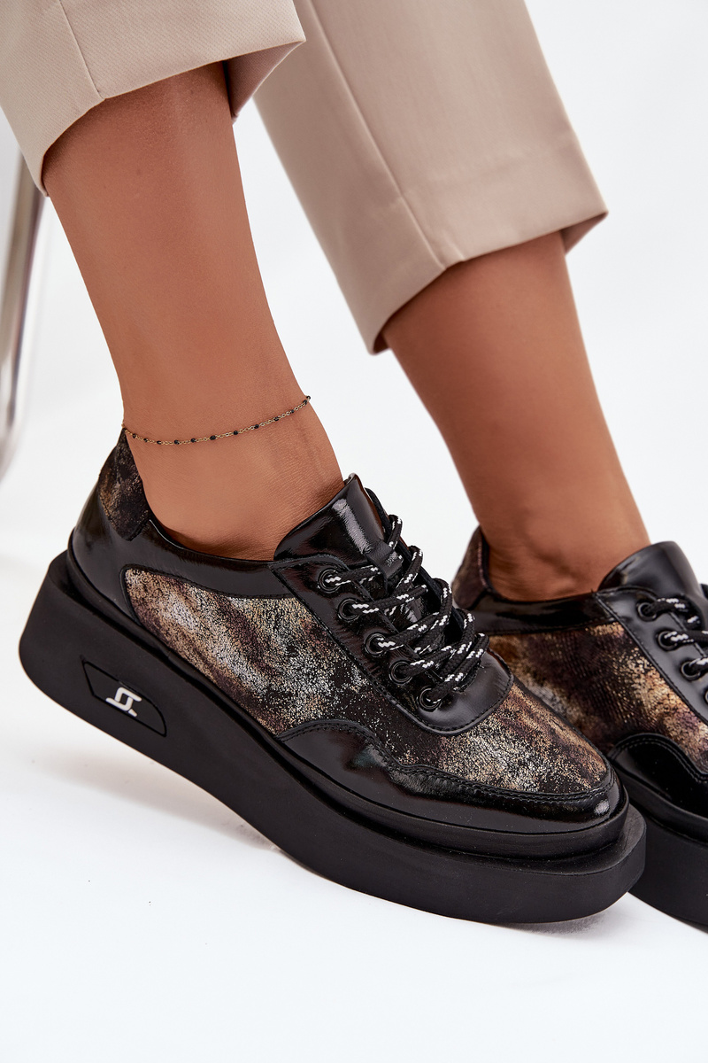 Kožené šněrovací dámské polobotky na platformě Artiker 57C2042 Černo-zlaté
