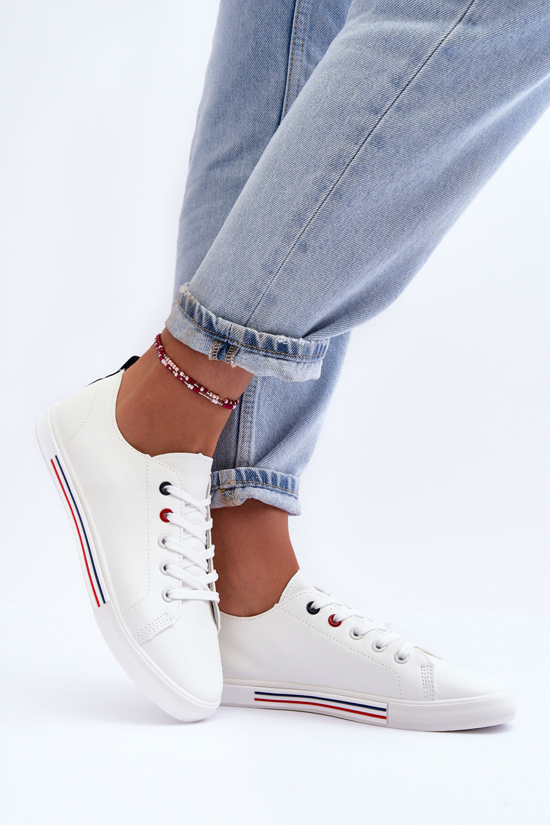Dámské sportovní boty na nízké podešvi. Klasický model s šněrováním. Měkká vložka poskytne pohodlné nošení obuvi. Zaoblené špičky. Tyto tenisky se jistě osvědčí v mnoha stylizacích!