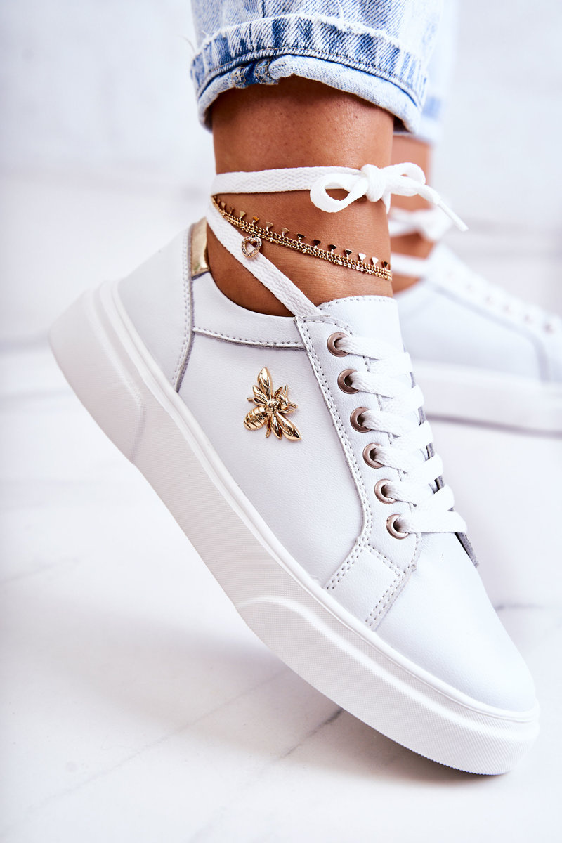 Kožené Sportovní Boty S Dekorací Bíle Calerie