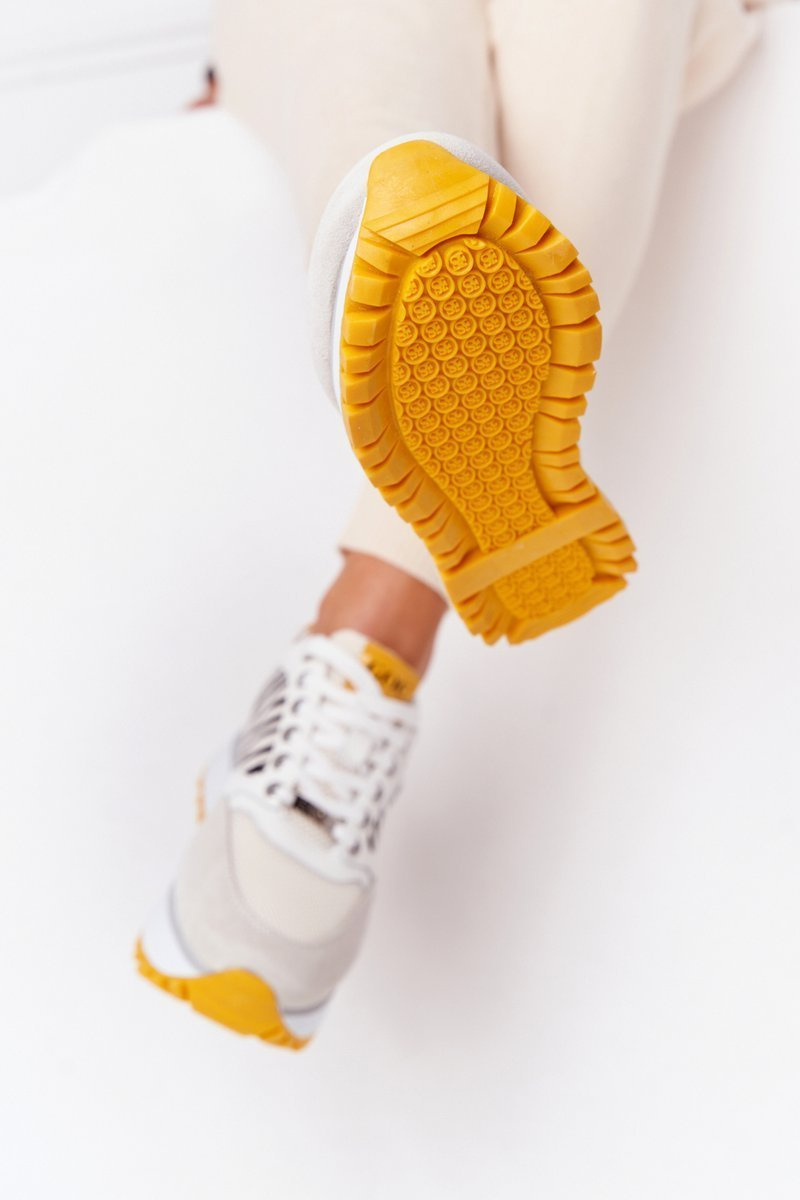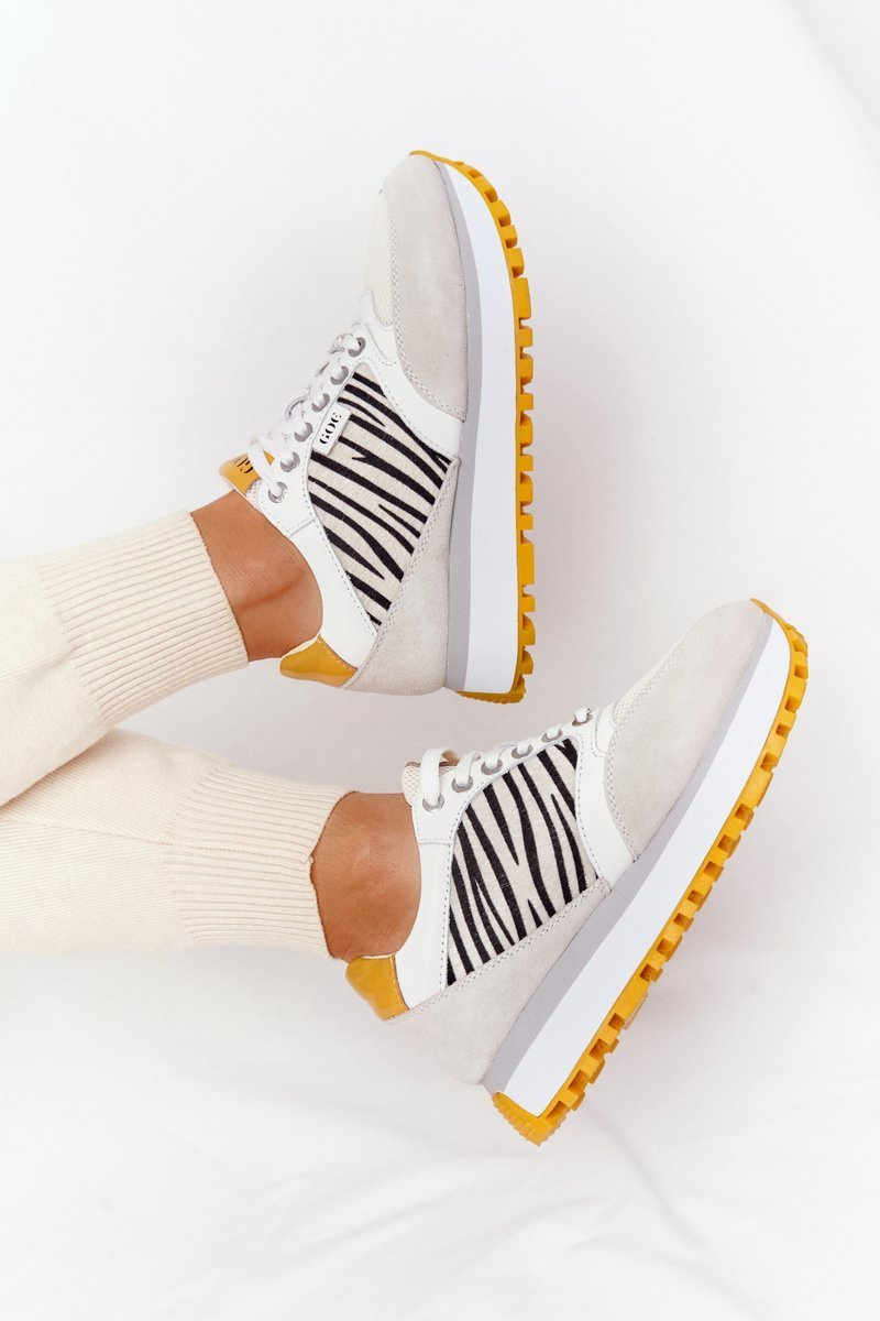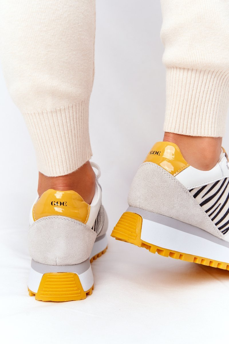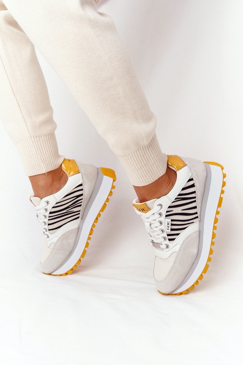Kožené Sportovní Obuv Na Platformě GOE HH2N4001 Bílé-Žluté
