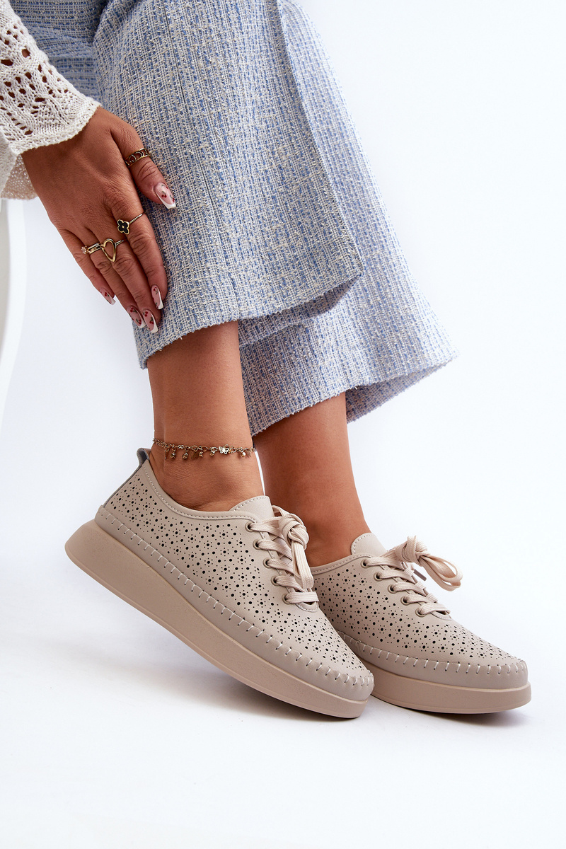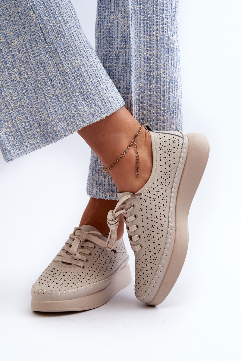 Kožené tenisky na platformě S.Barski LR278 béžové